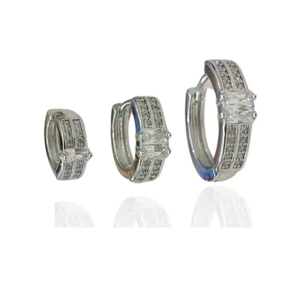 TRIO DE ARGOLAS CRAVEJADAS E BAGUETEConfira opiniões e avaliações de clientes!