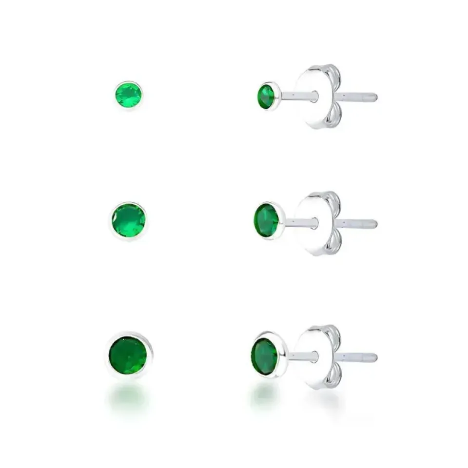 TRIO ZIRCÔNIAS REDONDAS VERDE ESMERALDA